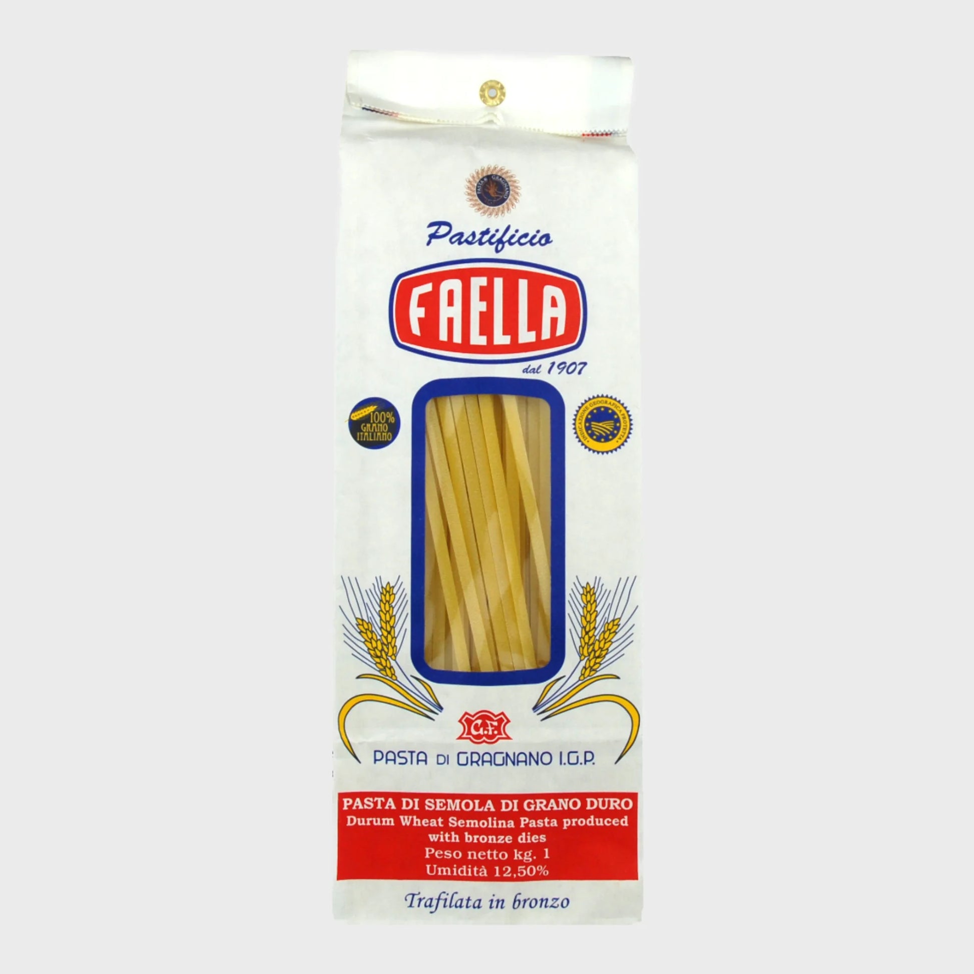 Die Faella Linguine di Gragnano IGP ist Pasta aus der Hauptstadt der Pasta: Gragnano südlich von Neapel. Hochwertiger italienischer Weizen, die Pressung mit Bronzeformen und die langen und schonende Trocknung sind unter anderem die Geheimnisse für diese hochwertigen Linguine. Die wichtigste Zutat steht nicht auf dem Etikett: Handwerkliches Können und Erfahrung gepaart mit Leidenschaft. Das hat sie so berühmt gemacht.